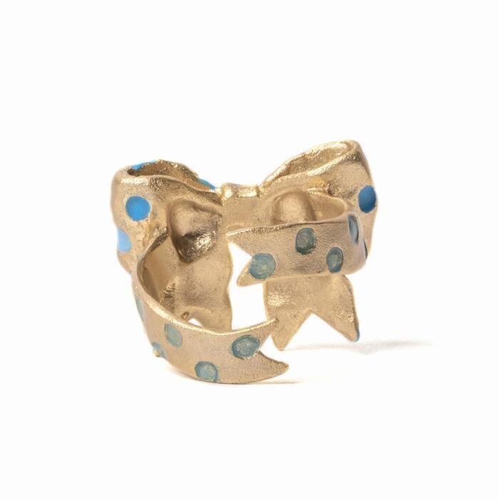 ※リボン部分の水玉の色は、トーンの違う水色を3色使用しております。ひとつひとつ手作業で3色の水玉をランダムに配置しておりますため、配色が異なります。