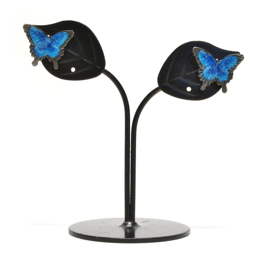 夜空を映したような深いブルーが印象的な蝶「オオルリアゲハ」をモチーフにしたピアス。