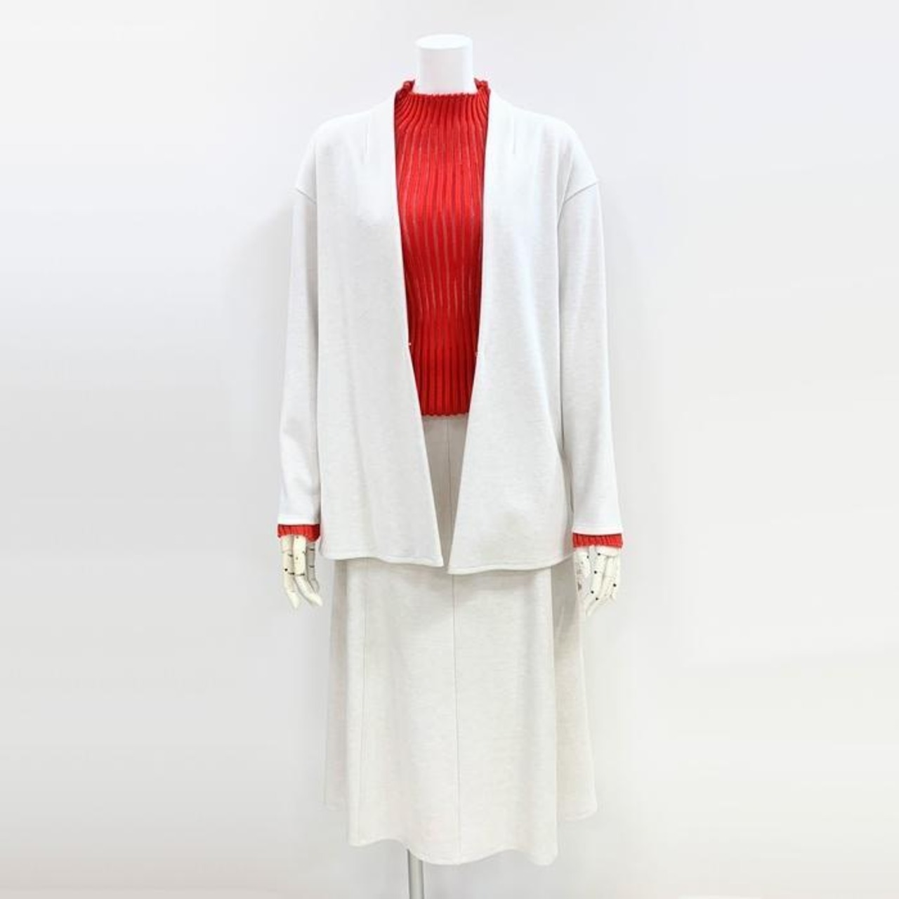 INDIVI ホワイトジャージフレアスカート 177-79022 indivi セットアップ対応 スーツ ミモレ丈 伸縮性 UVカット 洗える 洗濯機OK ウエスト総ゴム 白 仕事 セレモニー