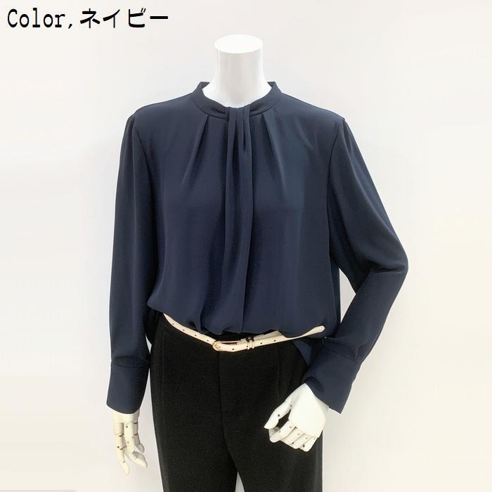 UNTITLED ジョーゼットタックブラウス 日本製 182-82202 アンタイトル ワールド 長袖 ノーカラー 入学卒業式 セレモニー 仕事 スーツインナー 春秋冬 レディース | marsh*mallow