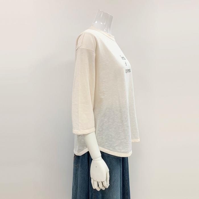 8分袖ロゴ入りTシャツ 3490-201-23 leshy forest レーシーフォレスト 日本製 綿100% 天然素材 洗える 丸首 ラウンドカット ナチュラル系 森ガール 7分袖 | marsh*mallow