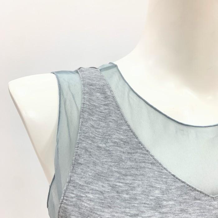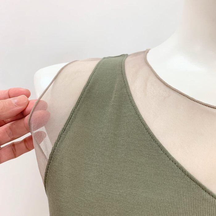 Cynical 2way シアータンクトップ 510-95513/570-95516 シニカル ノースリーブ 異素材切替え 軽い 伸びる ストレッチ メッシュ カーキ ホワイト ブラック ベージュ | marsh*mallow
