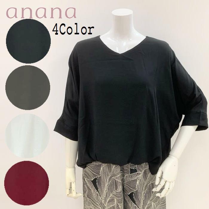 anana シフォンブラウジングブラウス a51-045 anana アナナ Vネック ドルマン 5分袖 インナードッキング 白黒赤緑 大人キレイ目 仕事 春夏秋 レディース | marsh*mallow