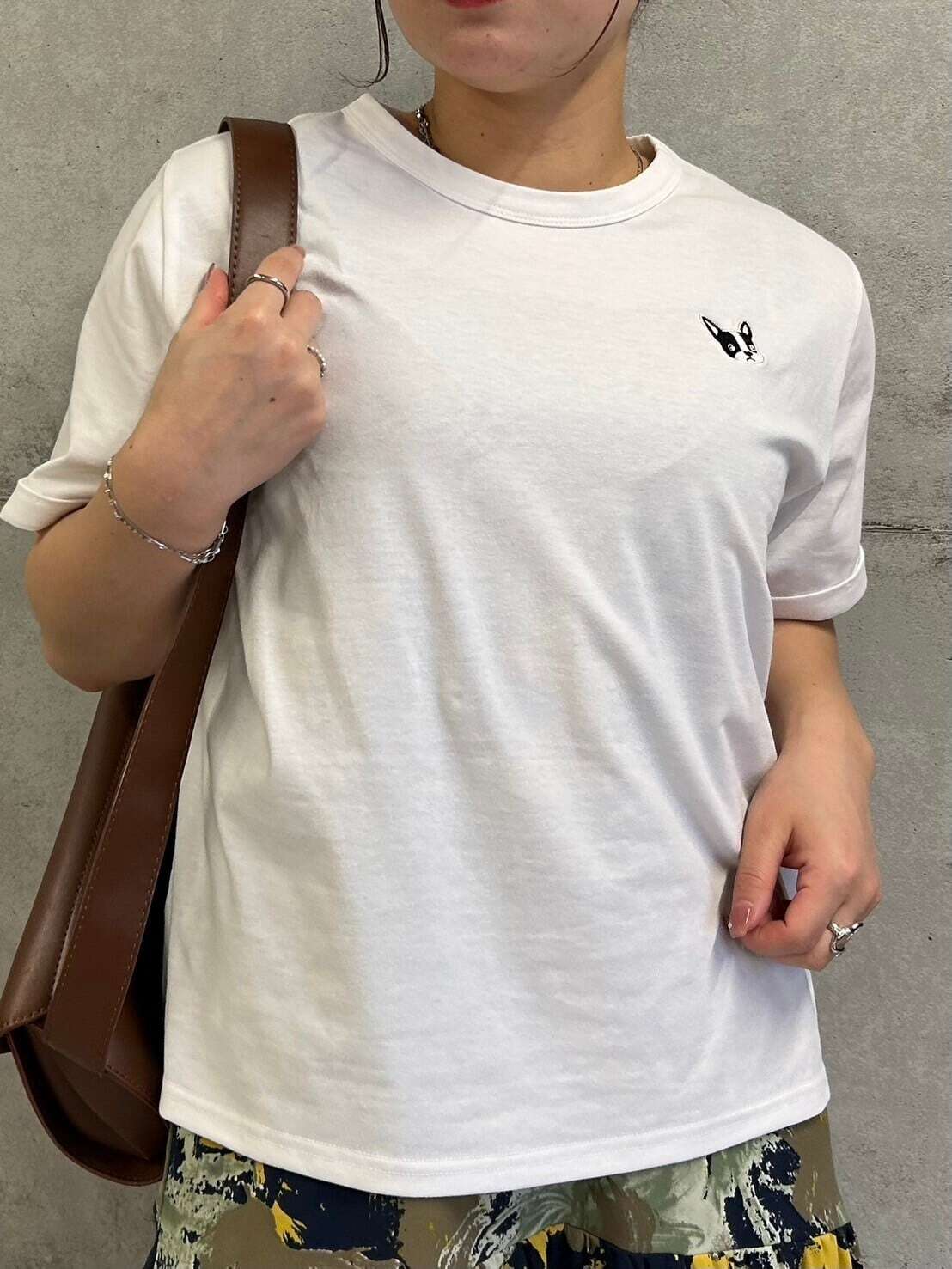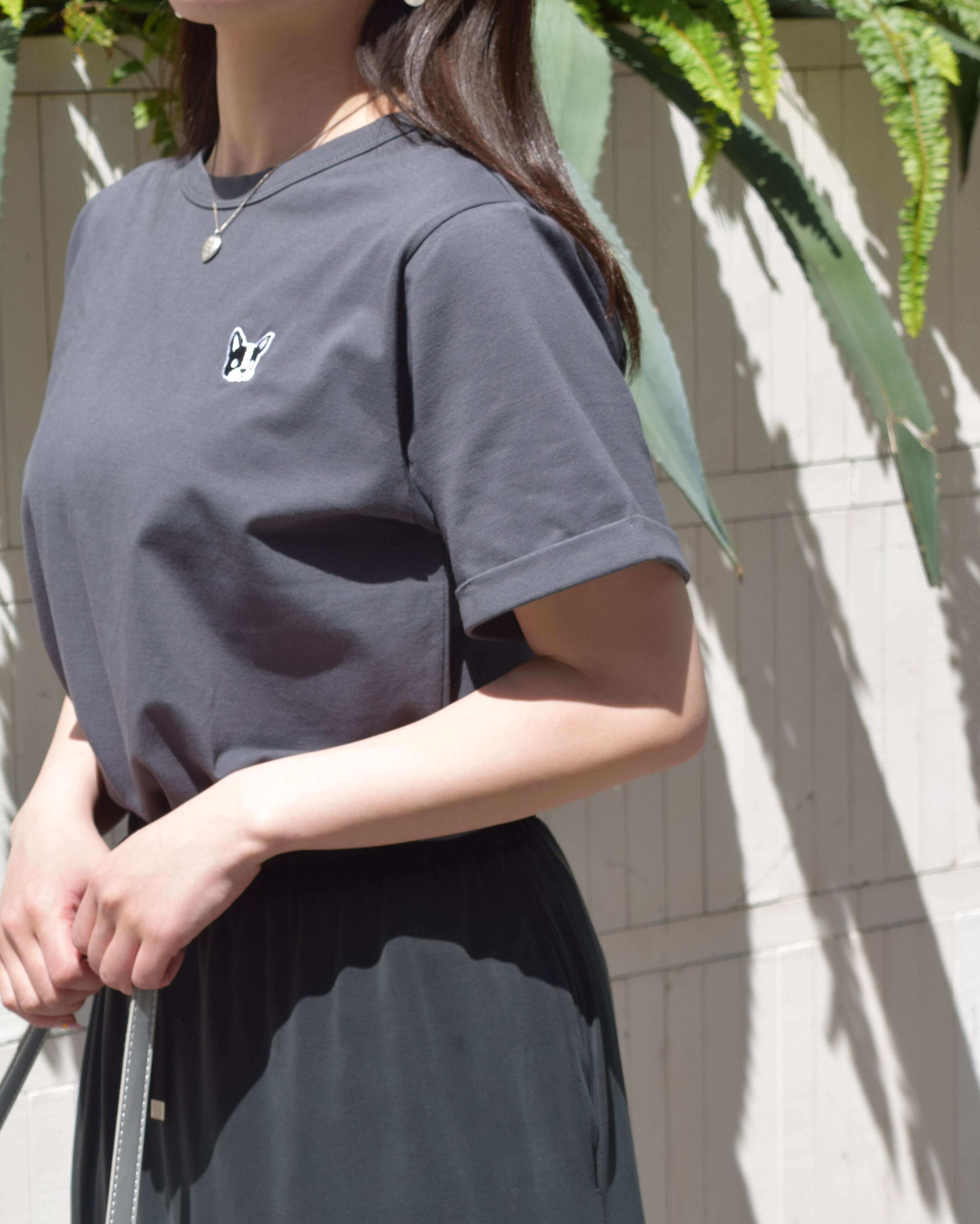 左胸元にフレンチブルドックのワンポイント刺繍がデザインされています。
