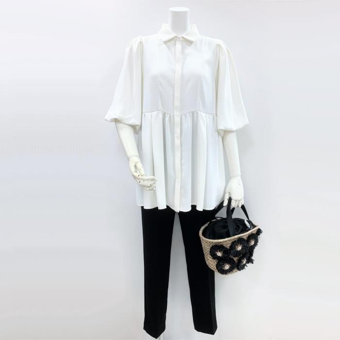 ■コメント■首元にあるパールのアクセントとお袖のバルーンスリーブが