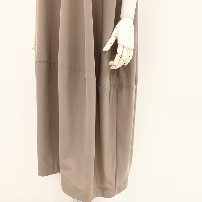 マットなツヤ消し素材のコクーンスカートが印象的なノースリーブワンピース