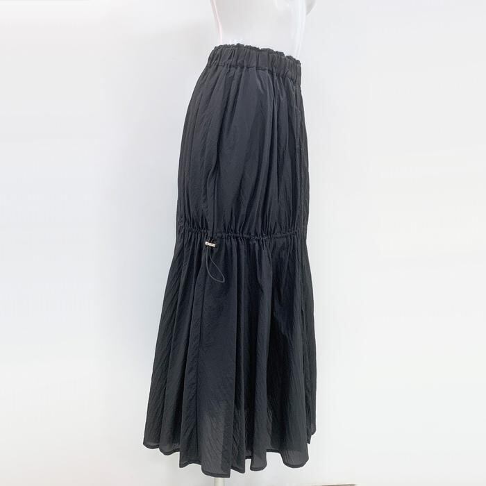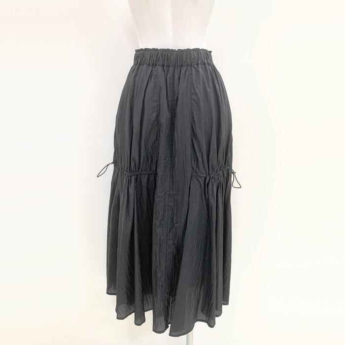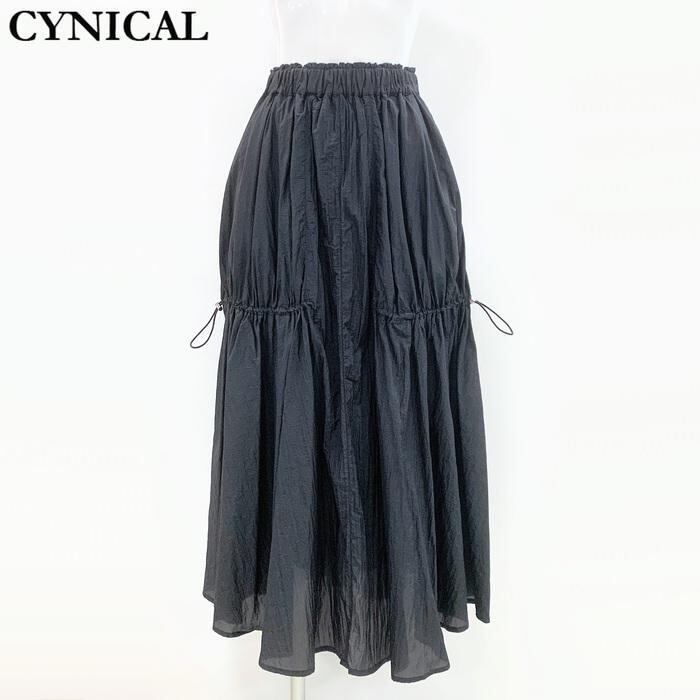 Cynical 超軽量ナイロンドロストフレアスカート 512-96068 cynical シニカル 洗える ブラック 裏地付き ポケット 透けない ふんわり ゴシック 個性派 ギャザー 光沢 黒 | marsh*mallow