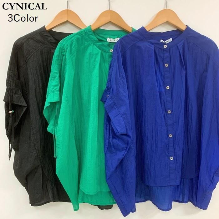 Cynical 肩ドロスト変形ブラウス 超軽量ナイロン 512-95135 cynicalシニカル 半袖 ノースリーブ 調整可 青緑黒 ふんわり シャカシャカ ワイド 春夏秋 トップス | marsh*mallow