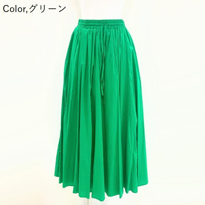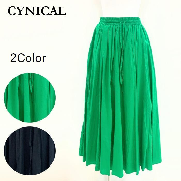 Cynical コットンボイルロングスカート 512-96044 シニカル 綿100% グリーン ブラック 緑 黒 裏地付き フワフワ 軽い 通気性 総ゴム ポケット付き 鮮やか | marsh*mallow