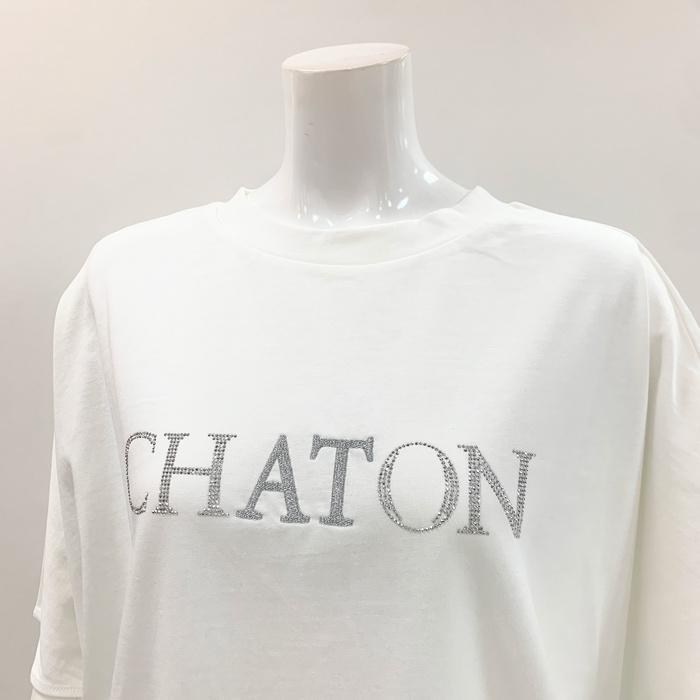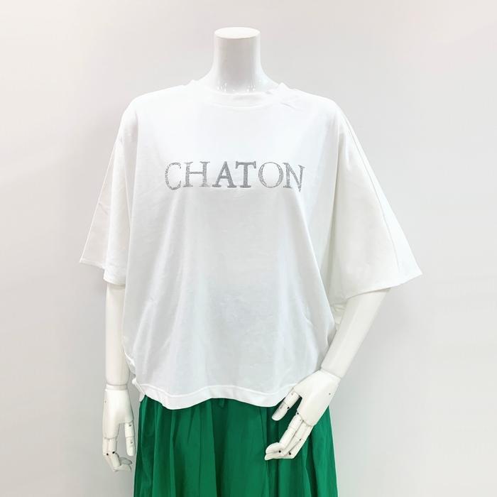 Cynical ストーンロゴコクーンT-シャツ 552-95059 cynical シニカル ラメ シルバー刺繍ロゴ ワイドカットソー 5分袖 白 綿100% 洗える ドルマン 裾絞り カッコいい | marsh*mallow