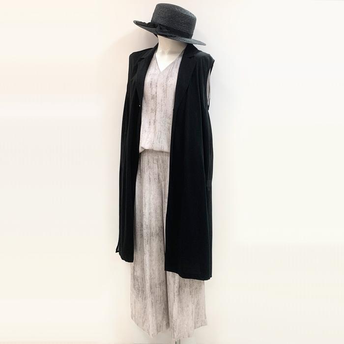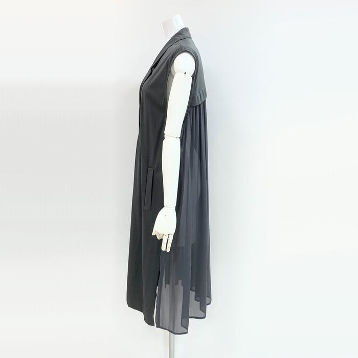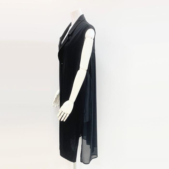 Cynical シアー切替テーラージレ 512-95121 シニカル 洗える ロングベスト ノースリーブ 軽い 大人女子 カッコいい ジョーゼット ブラック グレー 体型カバー | marsh*mallow
