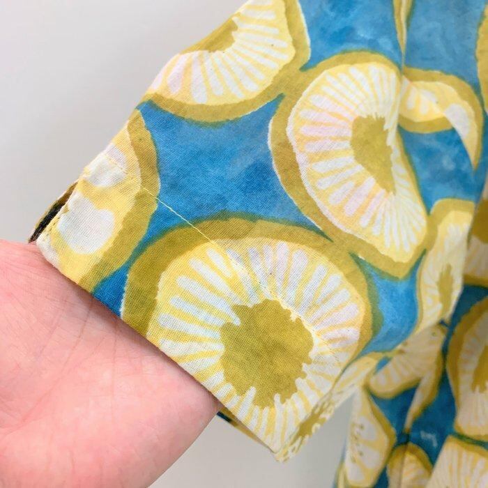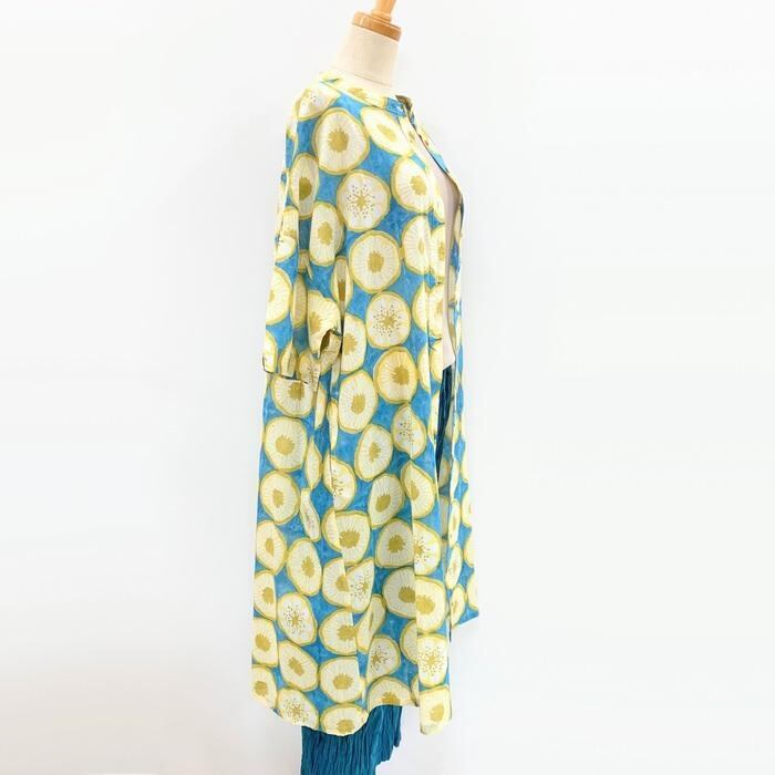 キウイプリントコットンシャツワンピース 24s093 artipur インド綿 5分袖 ノーカラーブラウス ゆったりフリー 涼しい シアー感 華やかな染め チュニック はおり | marsh*mallow