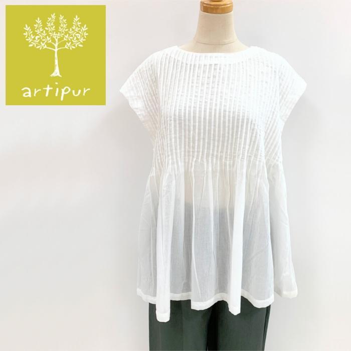 ピンタックコットンブラウス 25s084 artipur インド綿100% フレンチスリーブ フレア 涼しい チュニック 白 夏 シアー キレイ目ナチュラル 東京かんかん 洗濯可 | marsh*mallow
