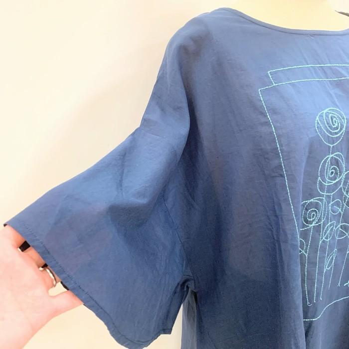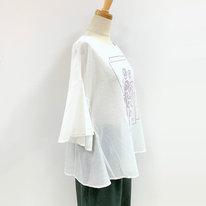 額に入った絵画を彷彿とさせる薔薇の刺繍を、綿ボイルに施したエレガントなブラウスです。