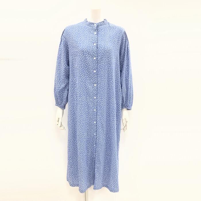 ランダムドットプリントサッカーシャツワンピース 25s041 aripur インド綿100% 洗える 総柄 ナチュラル 2way 羽織 ゆったり フリー ノーカラー 長袖 プレゼント | marsh*mallow