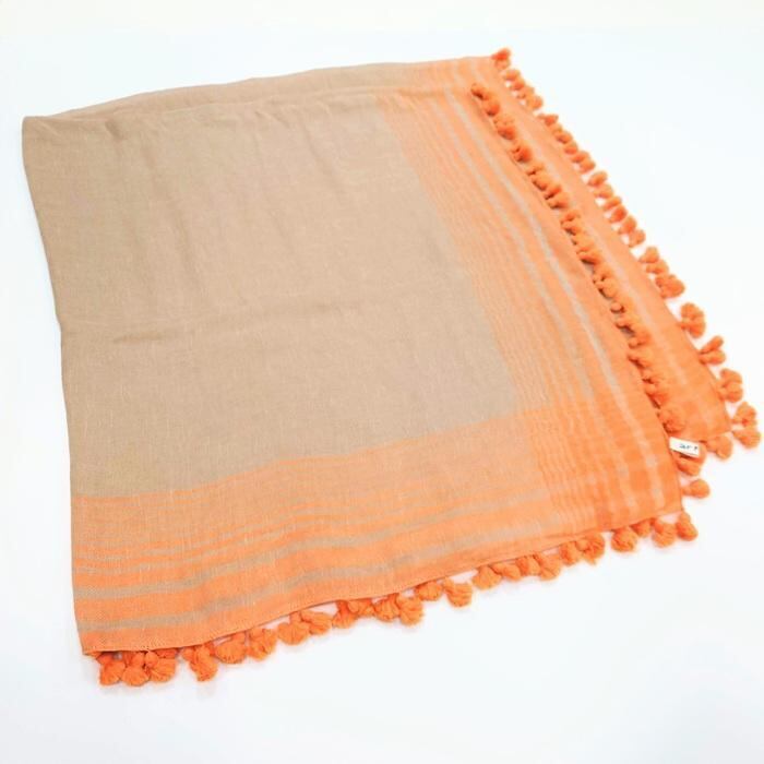 ストール フリンジ付き 綿麻 B14019-110 artipur 正方形 ショール エスニック 大判 オレンジ ベージュ 個性派 デザイン ライン 商品入れ替えの為 sbセール | marsh*mallow