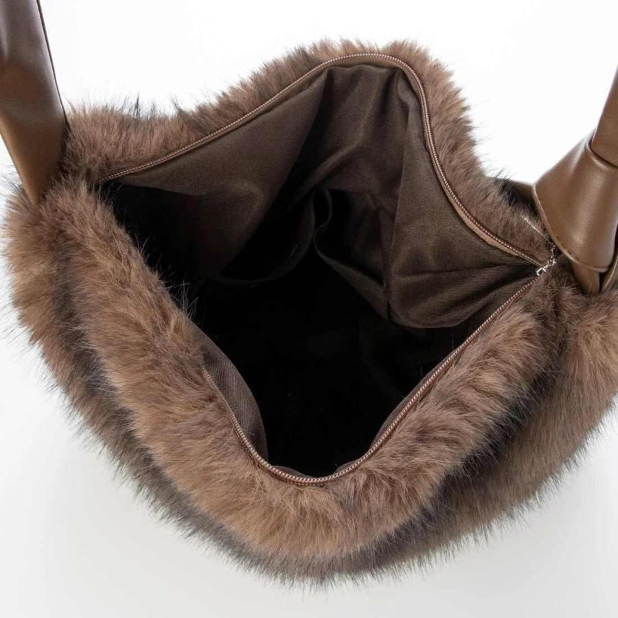 片側結びのリボンが大人っぽい雰囲気のファーバッグ。