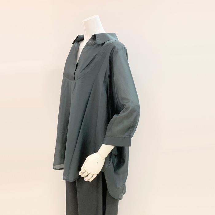 ROSIEE バック釦スキッパーテンセルシャツ r753246 rosiee ロージー シアーブラウス ゆったりフリーサイズ 光沢 おしゃれ チュニック ぬきえり 春夏秋 レディース | marsh*mallow
