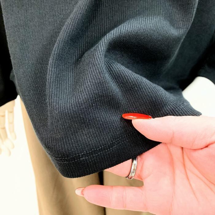 薄手リブで春秋にぴったりな着心地で、長く愛用できる一着です。