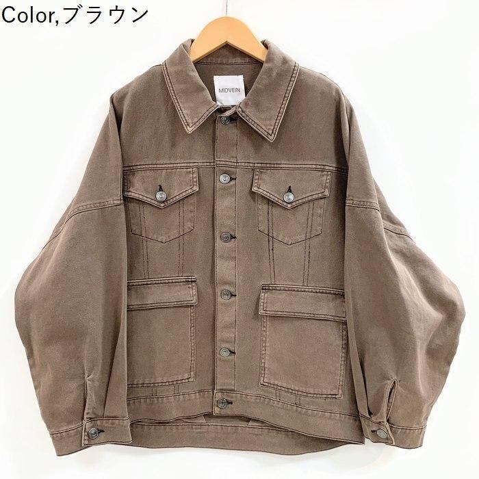 MIDVEIN デニムジャケット Gジャン 552-94403 midvein ミッドヴェイン オーバーデザイン コクーンワイド ワーク ウォッシュ indigo brown cynical アウター春秋 男女兼用 | marsh*mallow