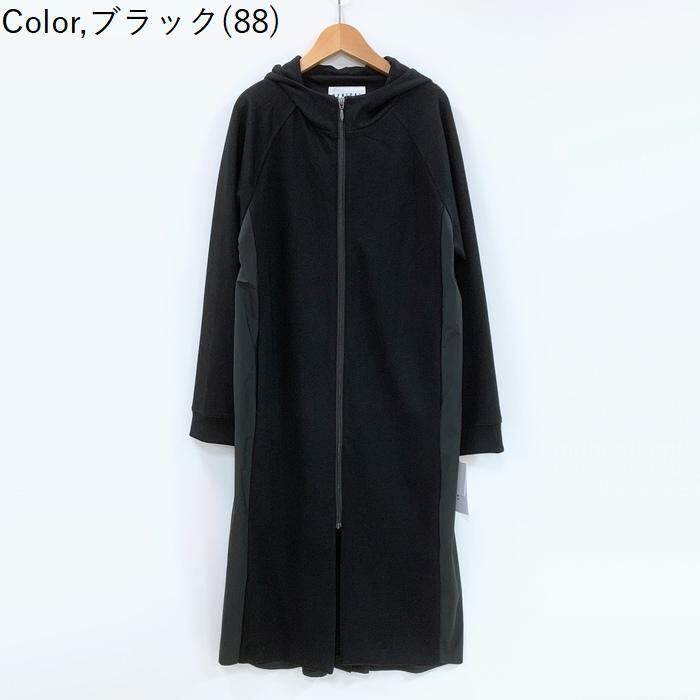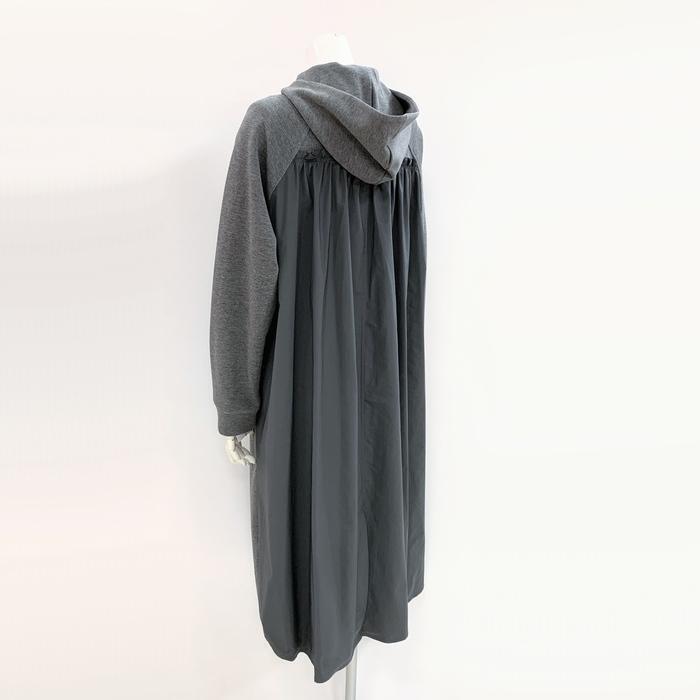 Cynical フード付きダンボールジップコート 552-94043 cynical シニカル 異素材切替ロングブルゾン アウター ロングパーカー 春秋 グレー 黒 軽い レディース