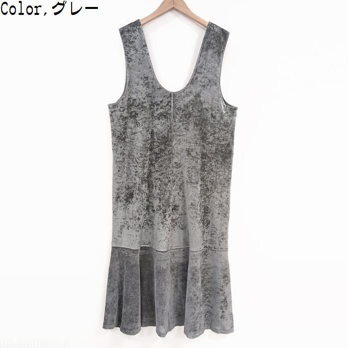 FURRY ベロアメッシュジャンパースカート 前後2wayワンピース 733-59300 furry 洗える 裏地付き ロング マーメイドライン silver black フリーサイズ レディース | marsh*mallow