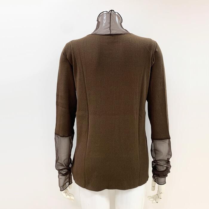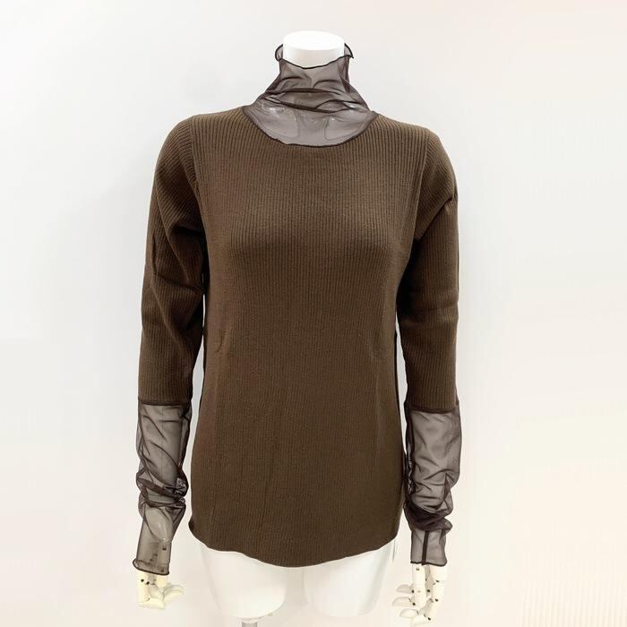 ROSIEE ROSIEE シアー切替リブニットソー R551245 ロージー メッシュハイネック 首袖チュール カットソー トップス タートル 茶色ブラウン きれい目 レディース 秋冬 | marsh*mallow