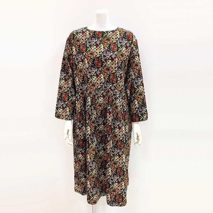 ブーケ柄をたっぷり楽しめる、やわらかな風合いのコットンコーデュロイワンピース。
