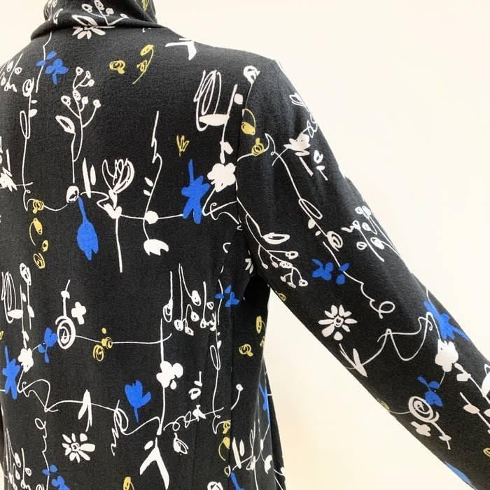 日本製 フリースタッチボタニカルプリントハイネック 577-19356 Lui Chantant タートルネック フラワー柄 黒ブラック 暖かい 伸縮 洗濯可 心地よい肌触り 春秋冬 | marsh*mallow