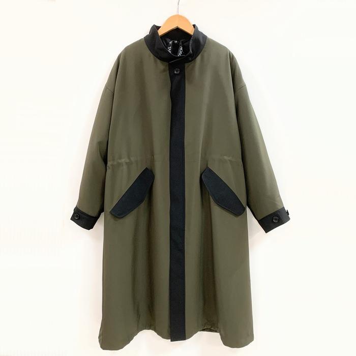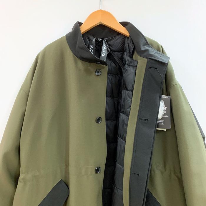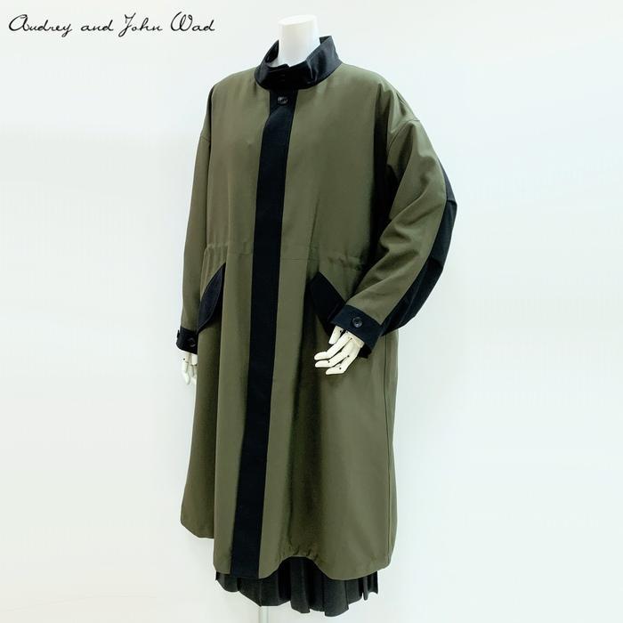 Audrey and John Wad TAIONダウンライナー付きスタンドカラーロングコート 180-94500 カーキ ブラックライン 秋冬 アウター ジャケット 男女兼用 ミリタリ | marsh*mallow