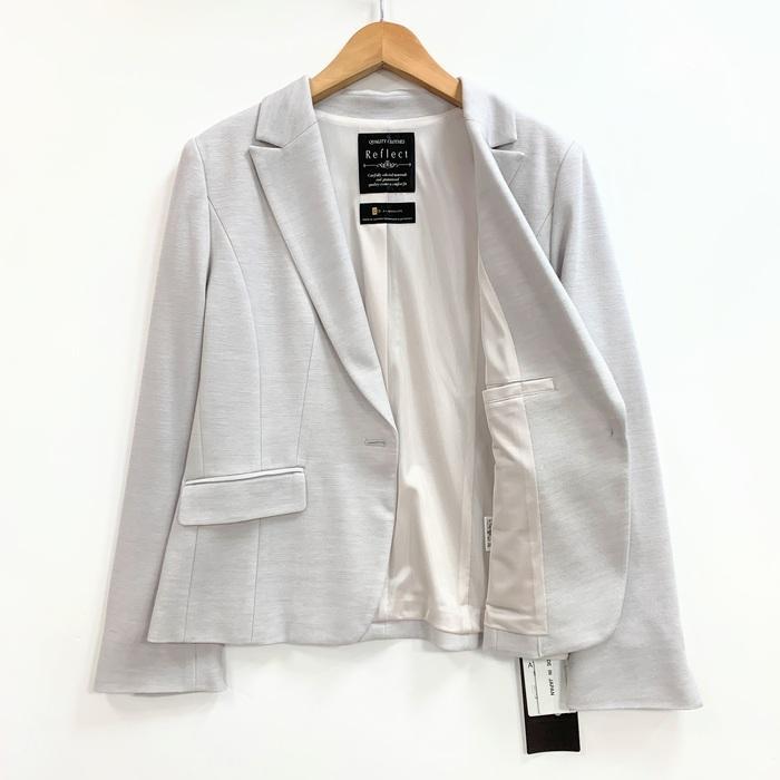 Reflect ジャケット 日本製 571-49350 reflect リフレクト 白ライトグレー スーツ セレモニー セットアップ対応 伸縮 洗える 着心地のよい 仕事 通勤 式典 入学卒業