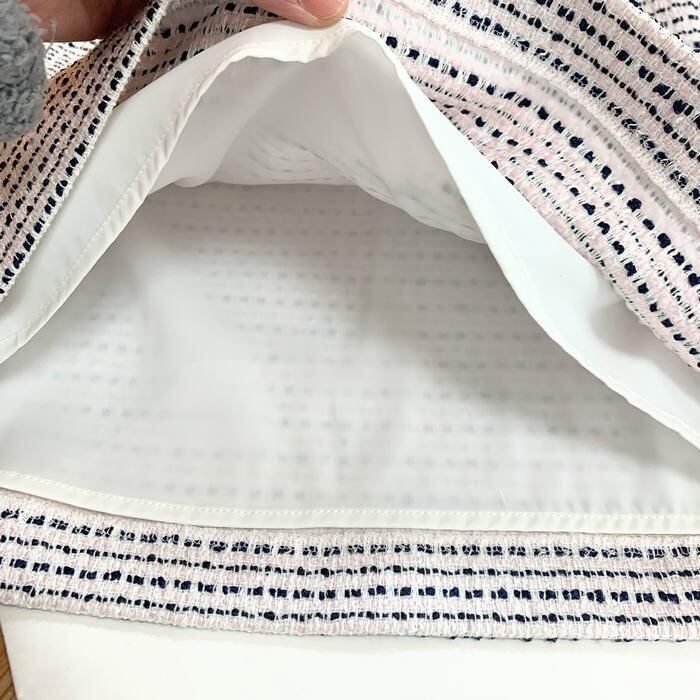 ホワイトとうすいピンクをベースに、ブラックとシルバーラメを織り込んだツイード生地は、