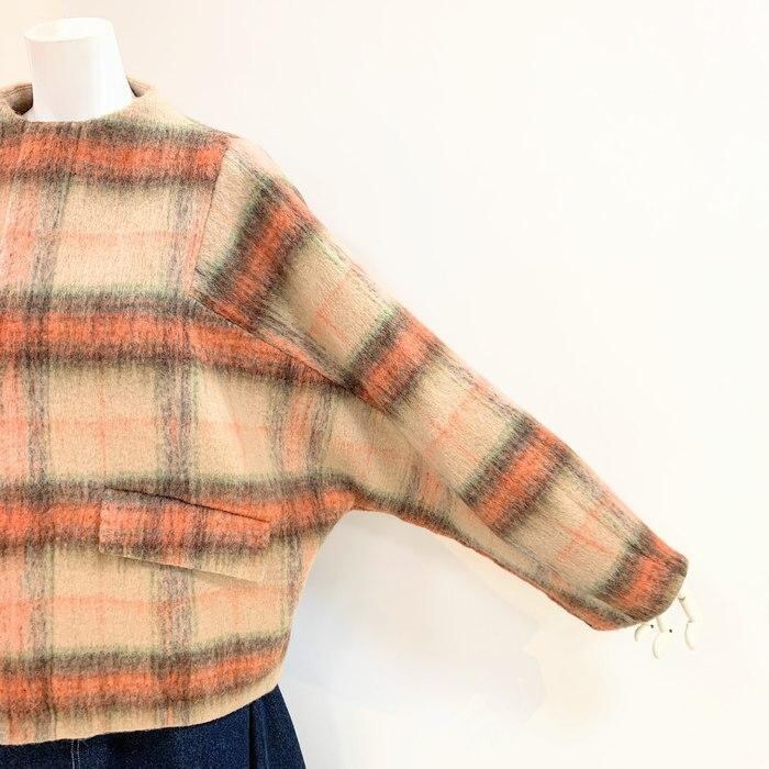 CYNICAL シニカル シャギーチェックショートコート 日本製生地 552-94009 上品 ボトルネック アウター ドルマン ラグラン コクーン ゆったり おしゃれ女子