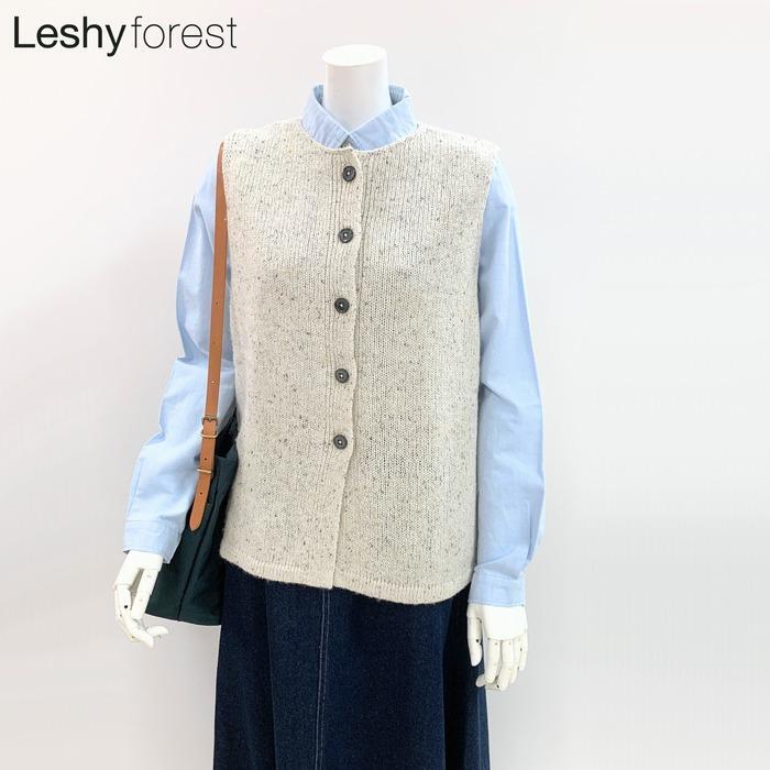ニットベスト 3530-301-29 leshy forest 2way 前開き ボタン ナチュラル 着やすい シルク混 軽い 優しい色 mixカラー プレゼント 母の日 春 秋 冬