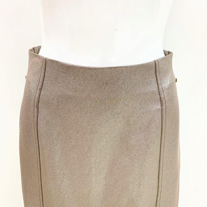 ヴィンテージラメ Iラインロングスカート タイトスカート 微光沢素材 ブロンズ ナロー マーメイド セミフレア 軽い 洗える 243ha1517 reyell