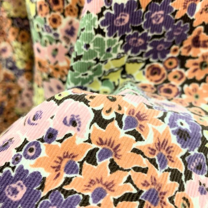 やわらかな表情のコーデュロイ素材に、繊細な小花柄を散りばめた