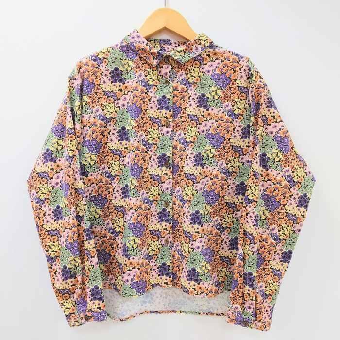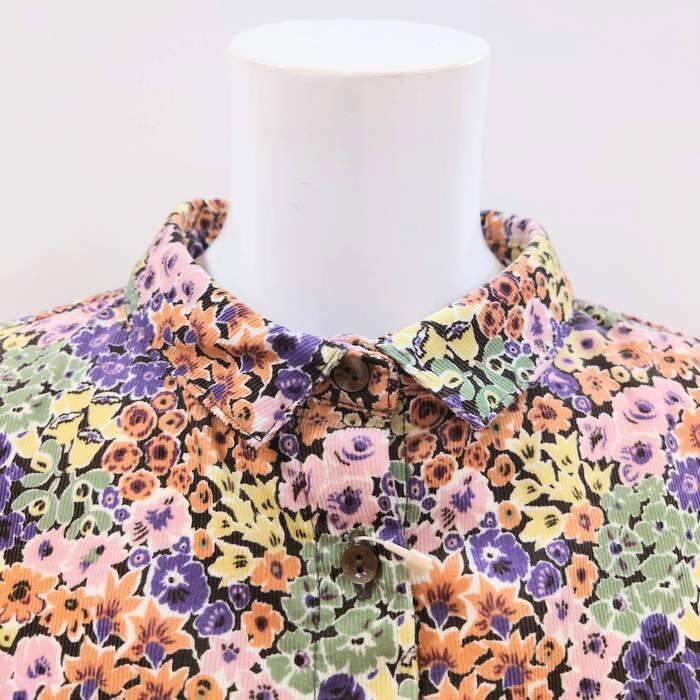 花柄コーデュロイシャツ 日本製 3530-110-15 LeshyForest 綿100% ショート丈シャツブラウス ナチュラル colorful flower 上品 春秋 レディース 母の日 贈り物に