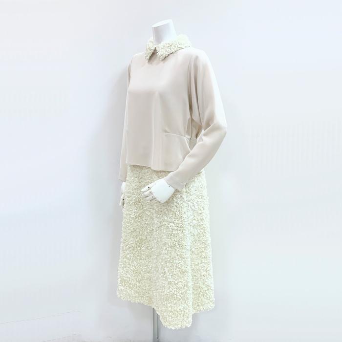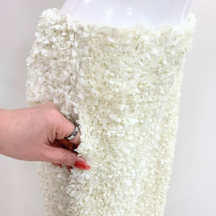 立体的な小花を贅沢にあしらった、上品な存在感のスカート。