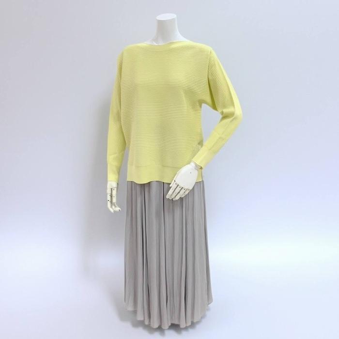 生地はシャリ感のある軽やかなスプリングニット。