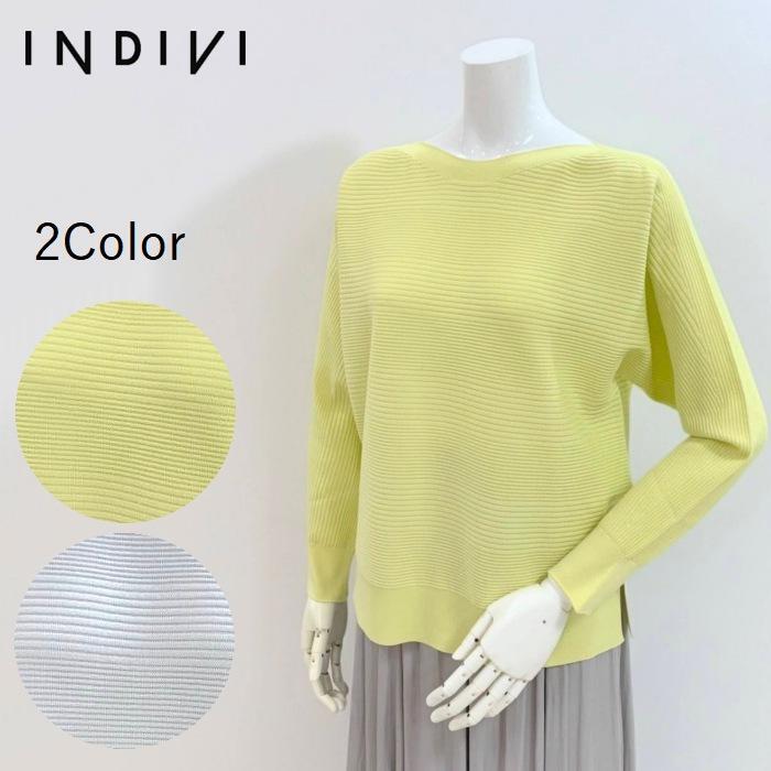 ボートネックリブニットソー 177-15350 indivi インディヴィ 洗える スプリングニット ドルマン ホールガーメント ゆったり 着心地の良い 仕事 キレイ目