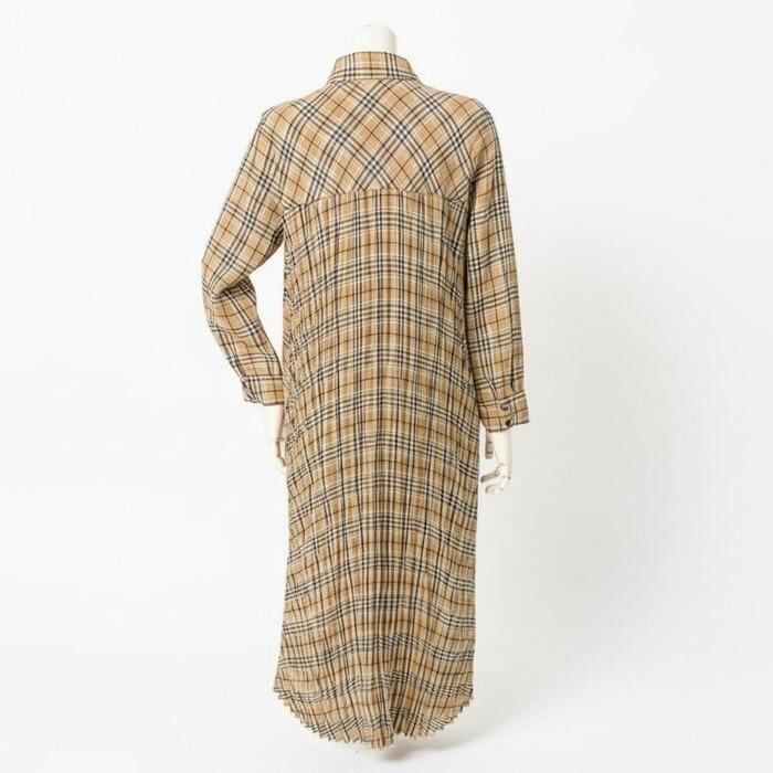 バックプリーツチェックシャツワンピース 013-54301 cordier ロングワンピース ボタン 長袖 洗える 羽織り オールシーズン レディース