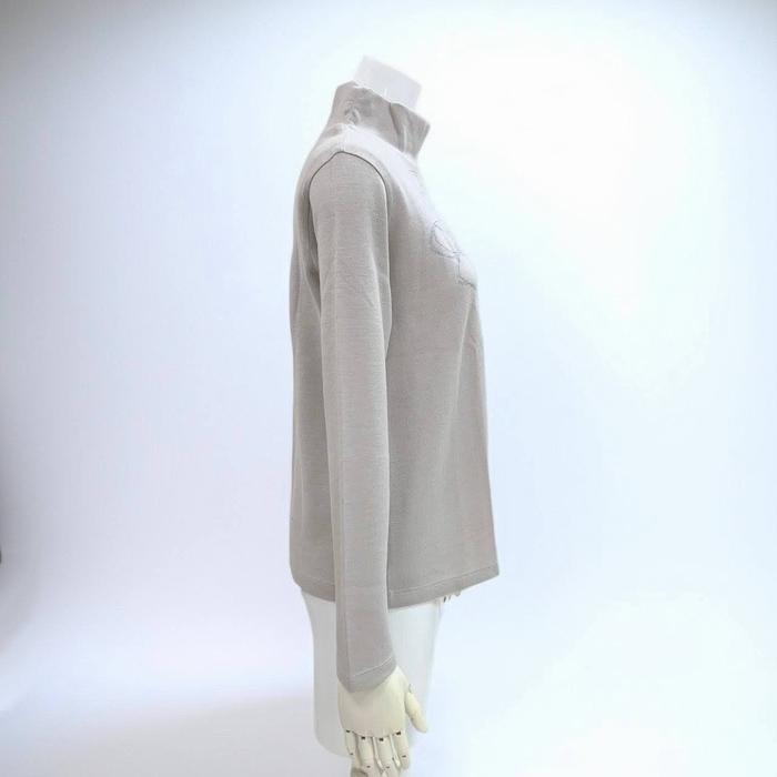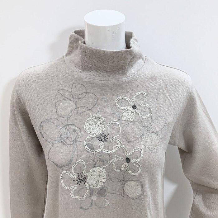 フラワー刺繍ハイネックプルオーバー 013-19358 cordier 日本製 ウール混 洗える 軽い 長袖 ライトグレー 柔らかい ラメ花柄 スタンドカラー 商品入れ替えのため