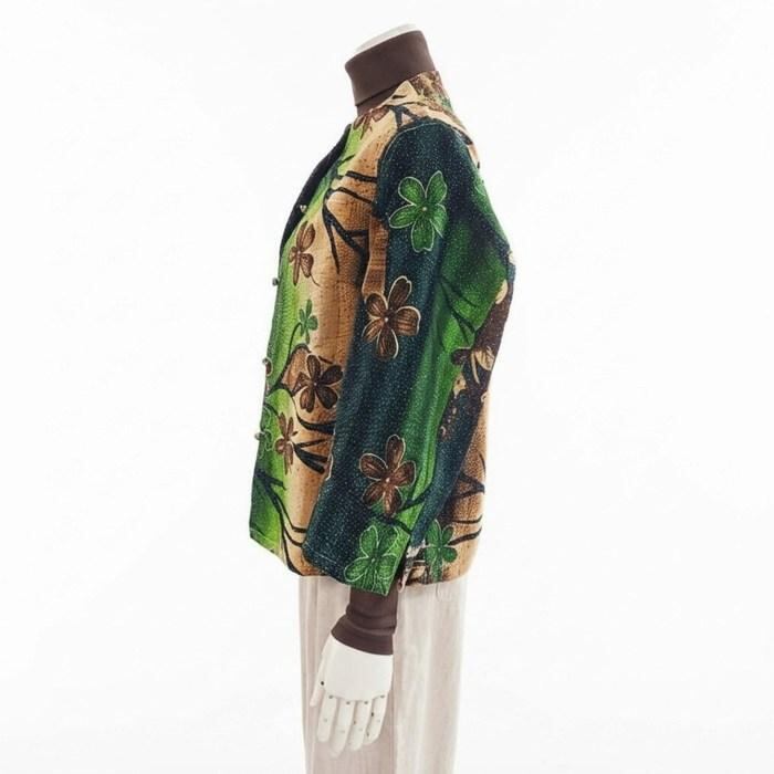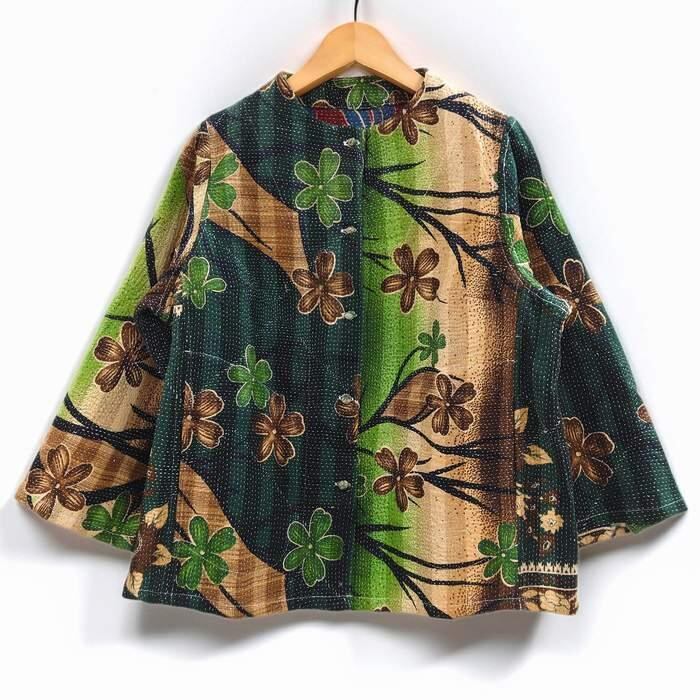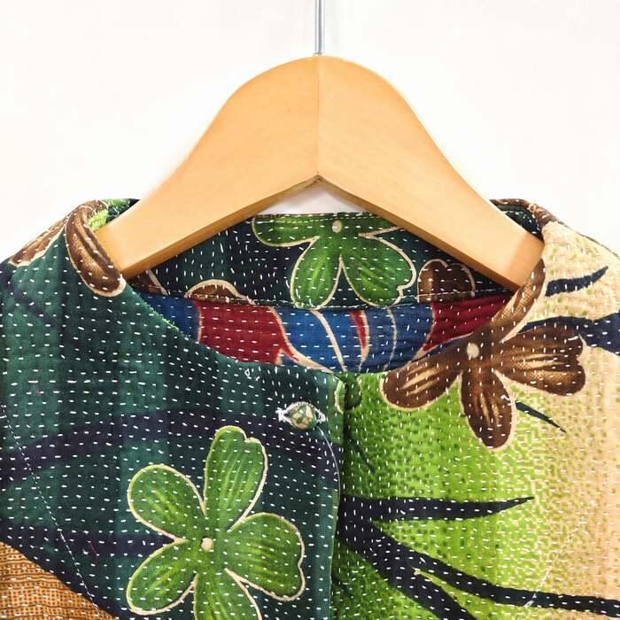 ラリーキルトジャケット 一点もの 26s706 東京カンカン NATIVE WORKS 花柄 グリーン 緑 刺し子刺繍 ショート丈 七分羽織 ハンドメイド 個性 春夏秋冬 綿 母の日