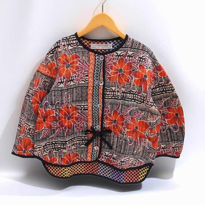 ラリーキルトジャケット 一点もの 25s710 東京かんかん NATIVE WORKS パイピング 赤 刺し子刺繍 ショート丈 羽織 ハンドメイド 個性派 春夏秋冬 綿 母の日
