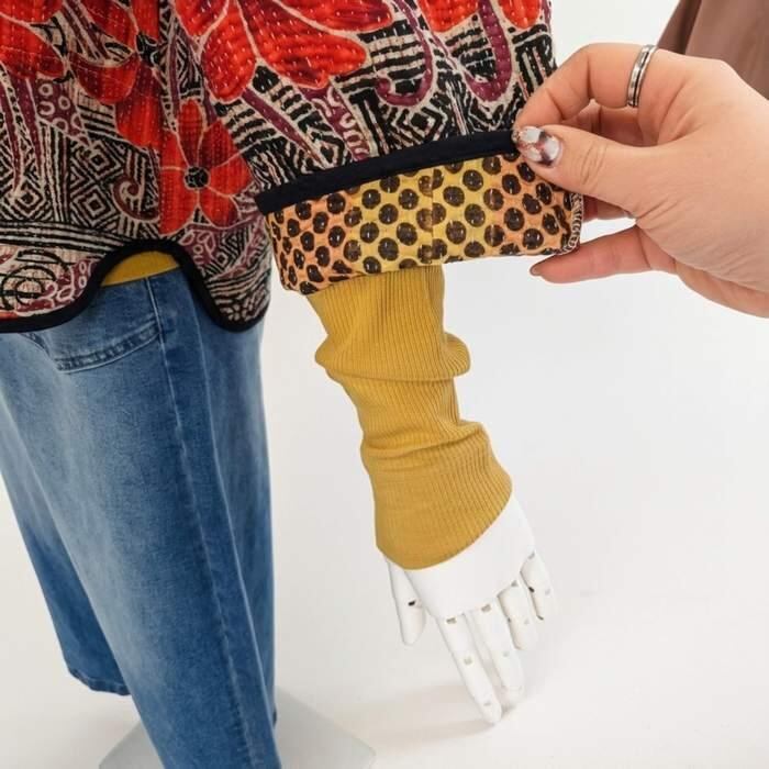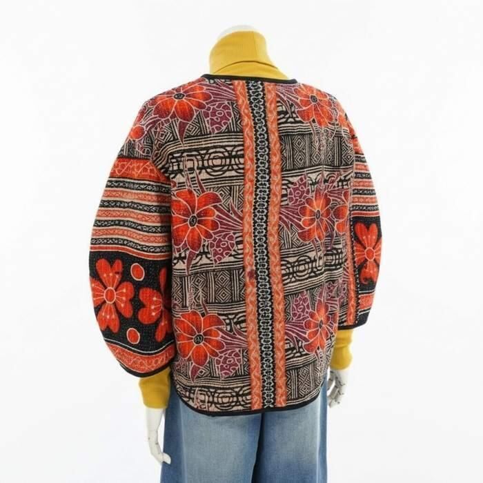 インドの手仕事が光る「ラリーキルト」で作った、ショート丈のジャケット。同じものがふたつとない、全て1点物の商品です。