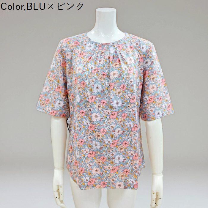 CORDIER リバティプリントカットソー 日本製 LIBERTY. 花柄 フラワー 5分袖 チュール ラウンドカット 綿100% 上品 ピンク ブルー 黄 緑 プレゼント 母の日 cordier