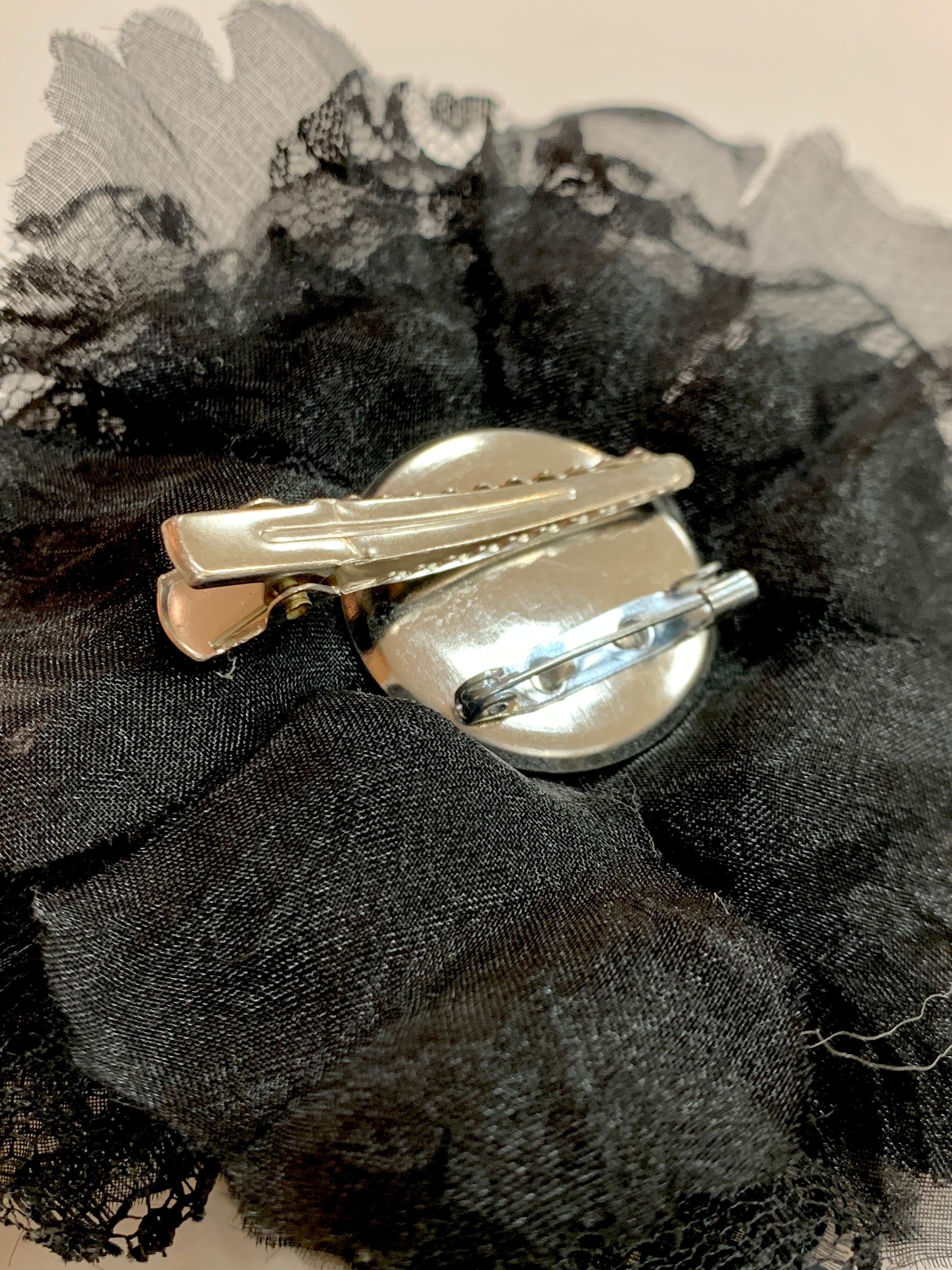 クリップと安全ピンの両方ついておりますので、お洋服に付けて頂くのはもちろん、バッグやヘアアクセとしての活用もできます。