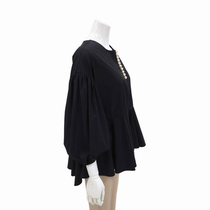 T/C パールキーネックボリューム袖ブラウス a55-043