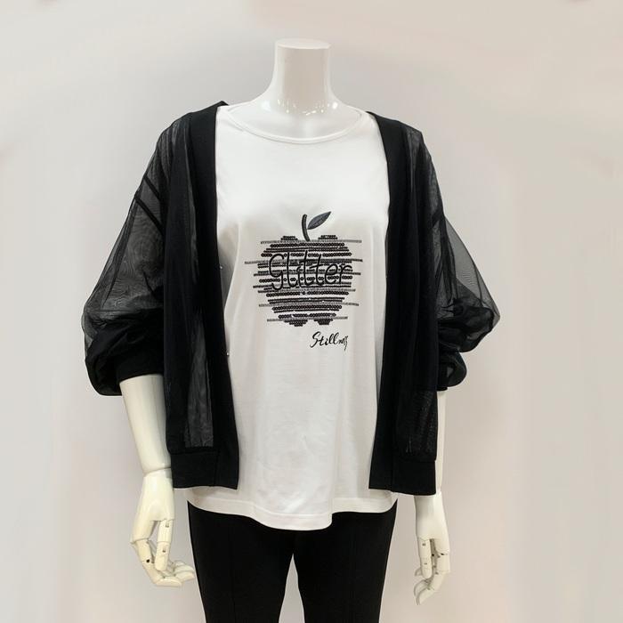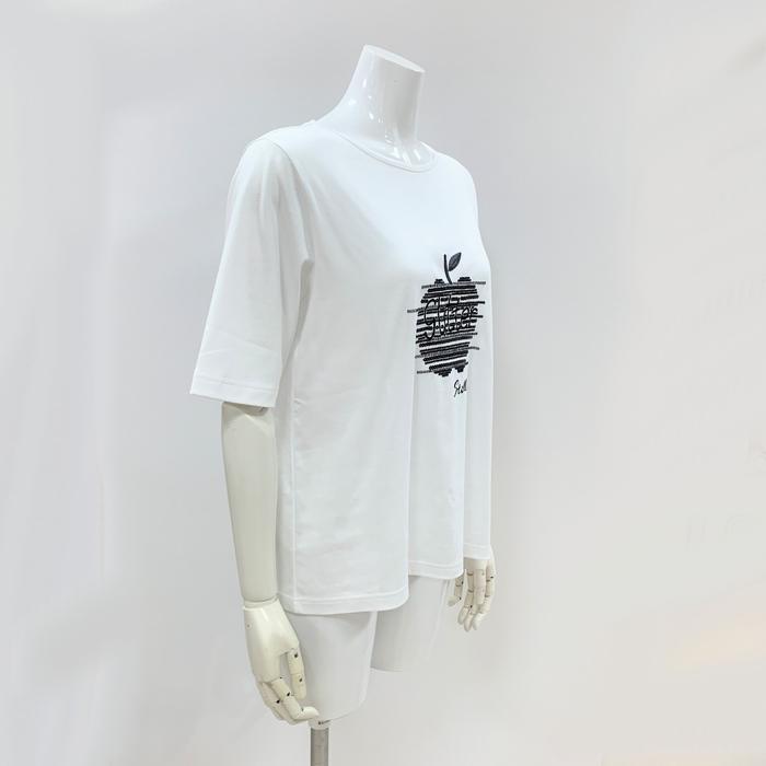 スパンコールとロゴ刺繍をおしゃれに組み合わせたデザインが目を惹くカットソーです。