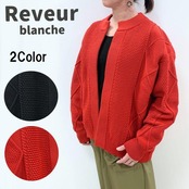 ケーブルニットカーディガン rvb60500 reveur 洗える ノーカラーカーデ